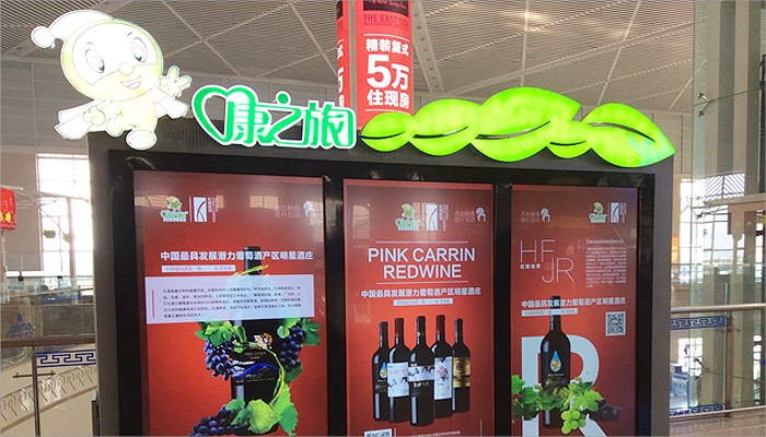 設(shè)計“康之旅”產(chǎn)品宣傳廣告牌,推廣紅酒、具備地域特色的產(chǎn)品。